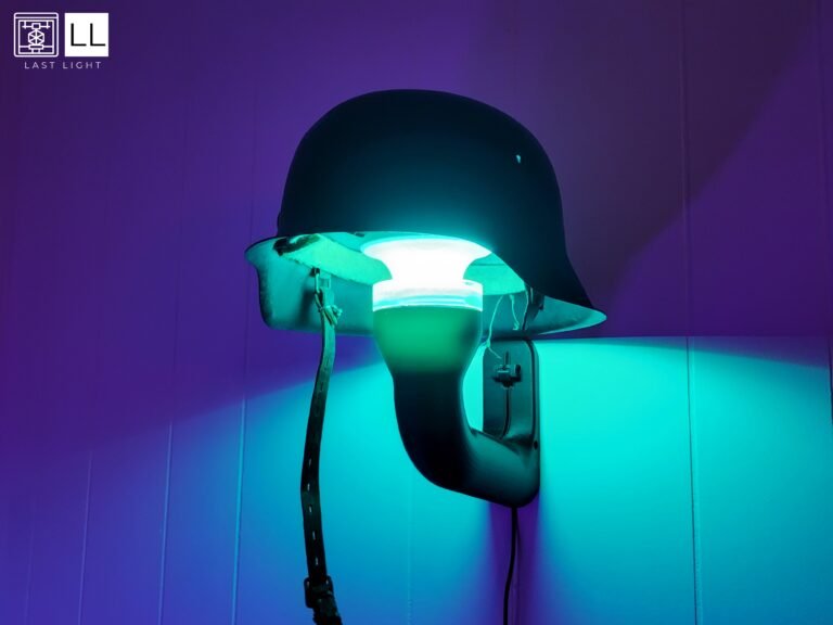 I had inherited a German Stalhelm, which was just sitting on a table in my basement. With my new home-based 3D-printer and an interest in Arduino microcontrollers, I had the idea to make a cool illuminated wall lamp for my basement office using Neopixel coding.
