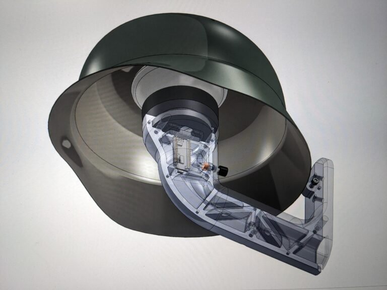 I designed a clamshell style body that trapped an Arduino Nano board within. Pushing a button on the back would cycle through the color options on the connected 24 LED light ring. On the early version, a light ring sat atop a clear resin-printed ring and the LEDs were aimed upward at a white light diffuser. The mount included a height adjustment knob and a unique “easy-mount” bracket that I developed. The unit is powered by a 5V USB plug.